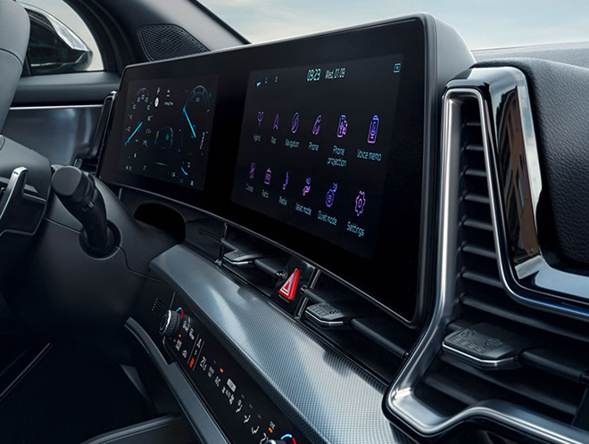 Typische Situation: Du willst telefonieren, eine Nachricht verfassen oder die Routenplanung ändern, steckst aber im dichten Verkehr und kannst die Hände nicht vom Steuer nehmen. Kein Problem: Drück die kleine Taste auf dem Lenkrad und sag einfach, was du tun willst! Das Infotainment-System enthält eine innovative Schnittstelle, die auf natürliche Spracherkennung abgestimmt ist. Probiere es aus – dein Kia Sportage hört aufs Wort.
