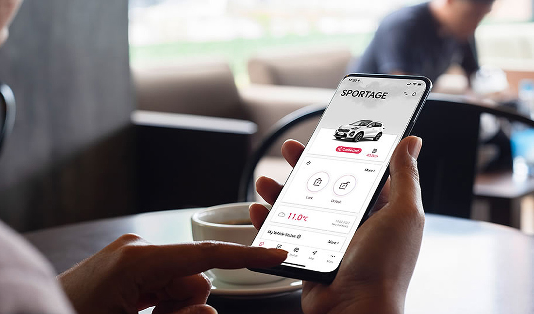 Immer bestens vernetzt. Mit Kia Connect und den Kia Live Services4 bekommst du in Echtzeit Informationen über alles, was du unterwegs wissen musst: Verkehrslage, Wetter, Lade- oder Tankstellen, Sehenswürdigkeiten, Parkplätze und mehr. Nach dem Aussteigen kannst du deinen Kia Sportage per Smartphone aus der Ferne bedienen, die Türen verriegeln, Fahrzeugdaten abfragen, dich zu Fuß weiter zu deiner Zieladresse führen lassen und vieles mehr.