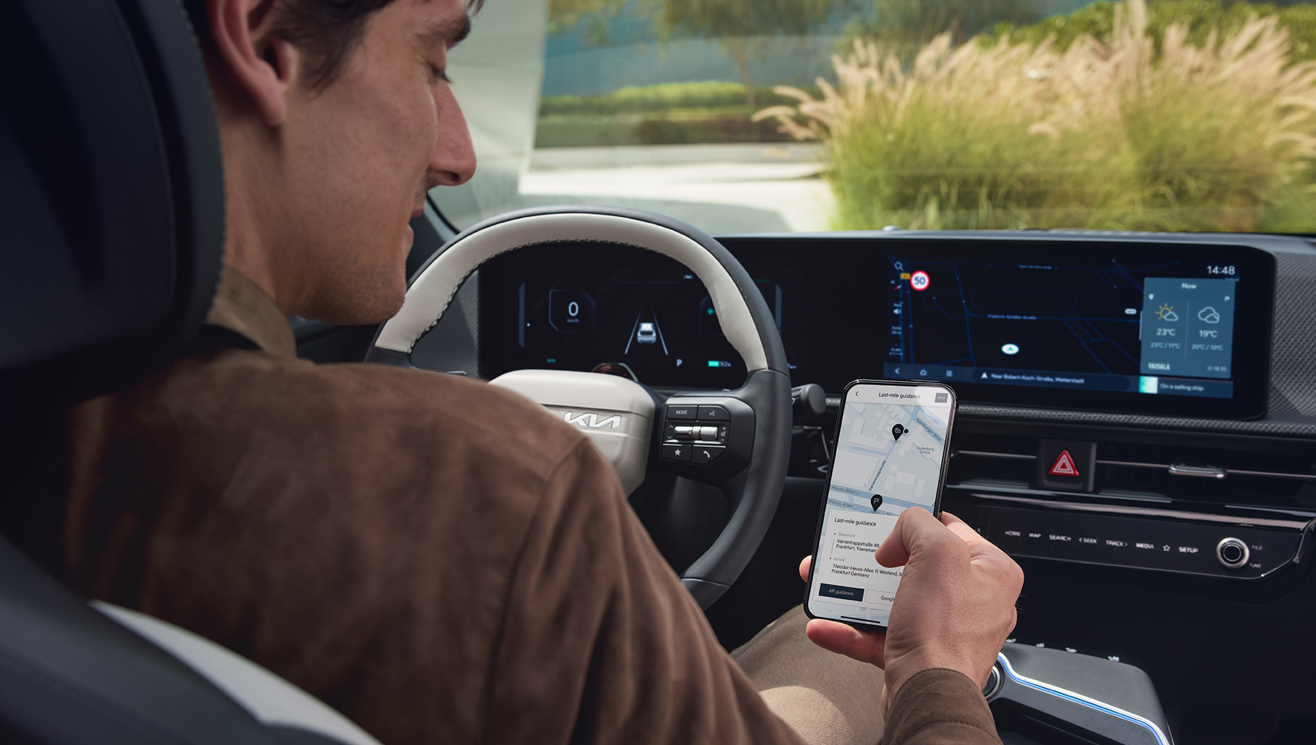 Verbinde dein Smartphone über die Kia Connect App nahtlos mit deinem EV6 und profitiere von all dem zusätzlichen Komfort, der inneren Gelassenheit und praktischen Unterstützung. Die On-Board-Dienste halten dich mit Echtzeit-Verkehrsdaten, nahegelegenen Ladestationen, Parkmöglichkeiten, Wetter und vielen weiteren nützlichen Informationen auf dem Laufenden. Die Off-Board-Dienste sind mindestens genauso praktisch: Remote-Batteriesteuerung, ferngesteuerte Klimaanlage sowie Last-Mile-Navigation sind nur einige der vielen Features.4, 5, 6