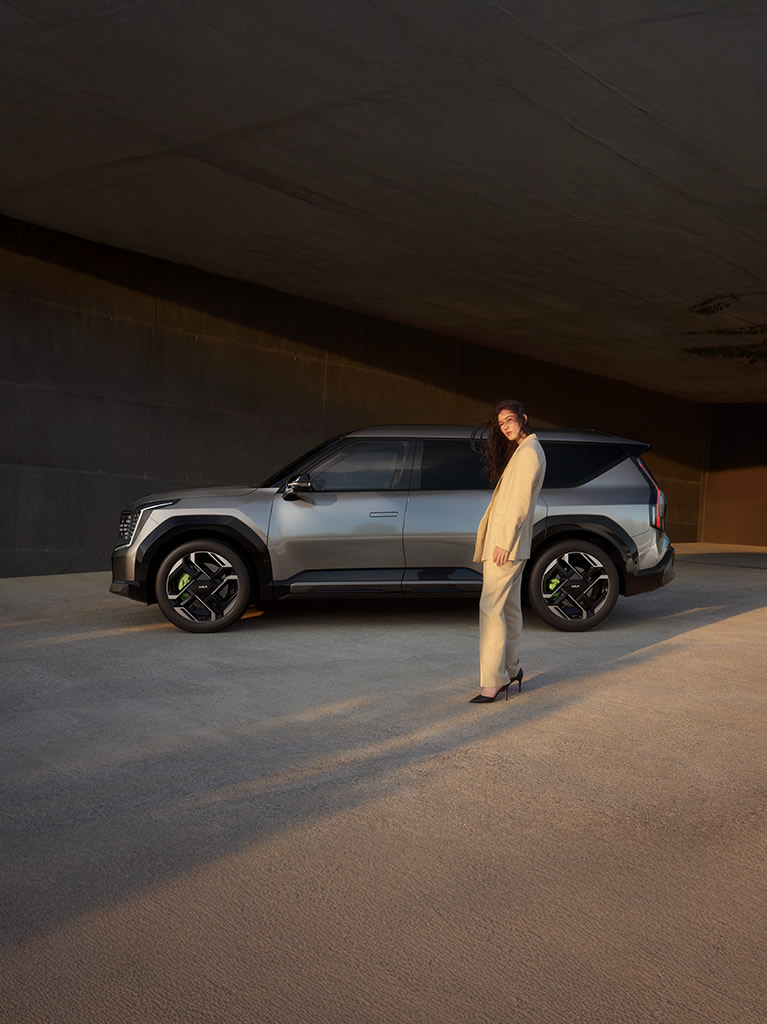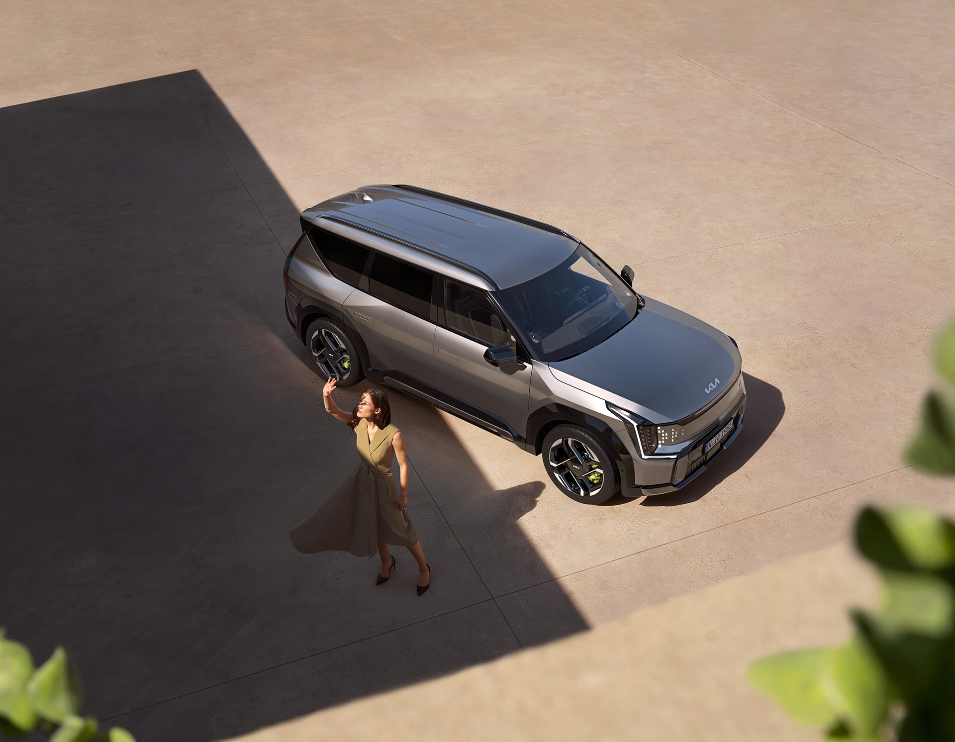 Um die maximale Ladegeschwindigkeit erreichen zu können, muss der EV9 GT an einer 800-Volt-Ladestation mit mindestens 210 kW geladen werden. Die reale Ladegeschwindigkeit und Ladedauer hängen von der Batterie-Temperatur und den Wetterbedingungen ab.