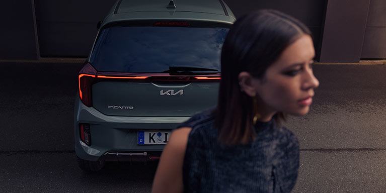 Das markante Design des Picanto erkennst du auch am visuell verbreiterten Heck. Siehst du, wie die vertikalen Rückleuchten die horizontale LED-Lichtsignatur des Frontdesigns aufgreifen?