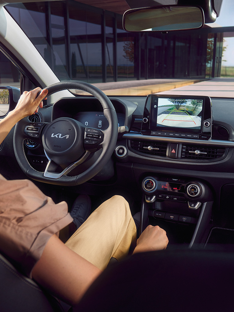 Der Vibe im Innenraum? Ganz wie du willst. Ausstattungsabhängig erhältst du deinen Picanto zum Beispiel mit Stoffsitzen in Schwarz, mit Sitzen in hochwertiger Ledernachbildung und Interieurelementen in Hochglanzschwarz. Für noch mehr Komfort sorgt die Sitz- und Lenkradheizung.